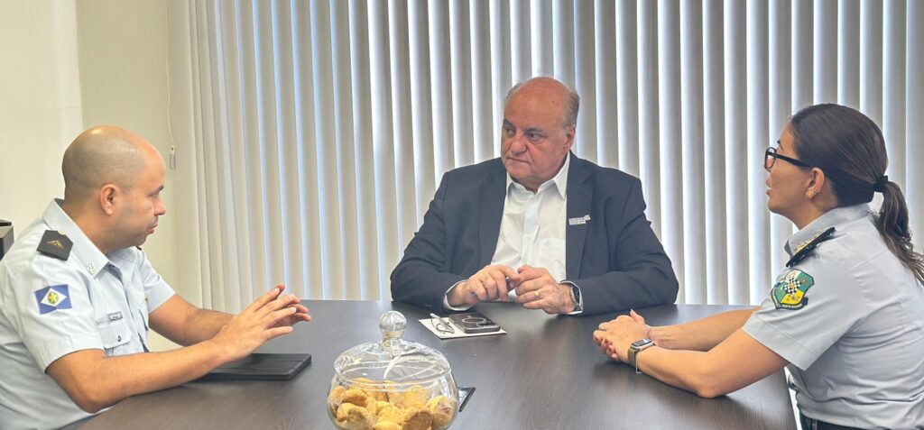 No início da semana, o presidente da Fecomércio-MT, José Wenceslau de Souza Júnior, recebeu a coronel Vanessa e o subtenente Anderson Lima, ambos da Polícia Militar do Estado de Mato Grosso. O motivo da visita foi sobre o Corpo Musical da PMMT, que neste ano completa 133 anos.